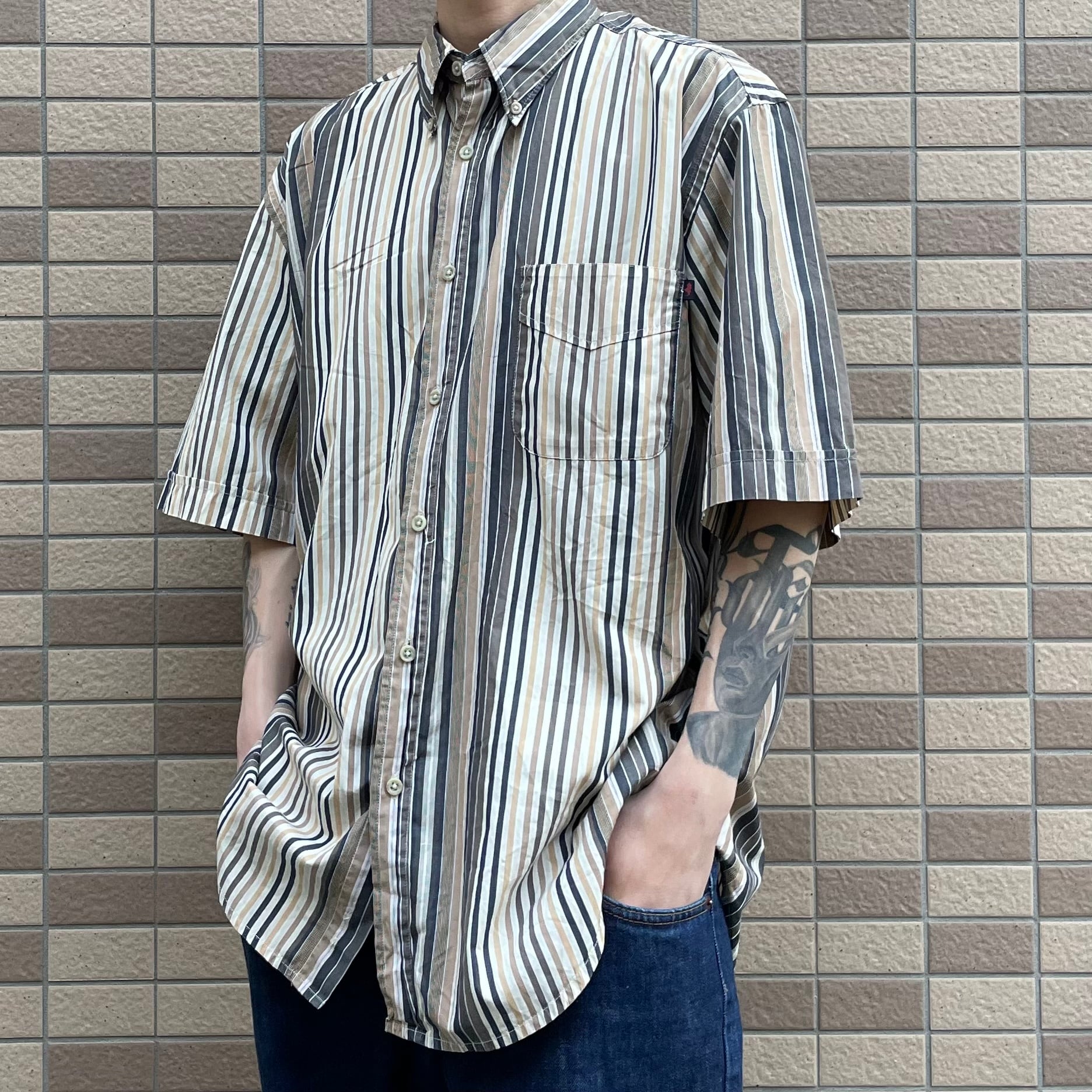 ストライプ シャツ ブラウン
