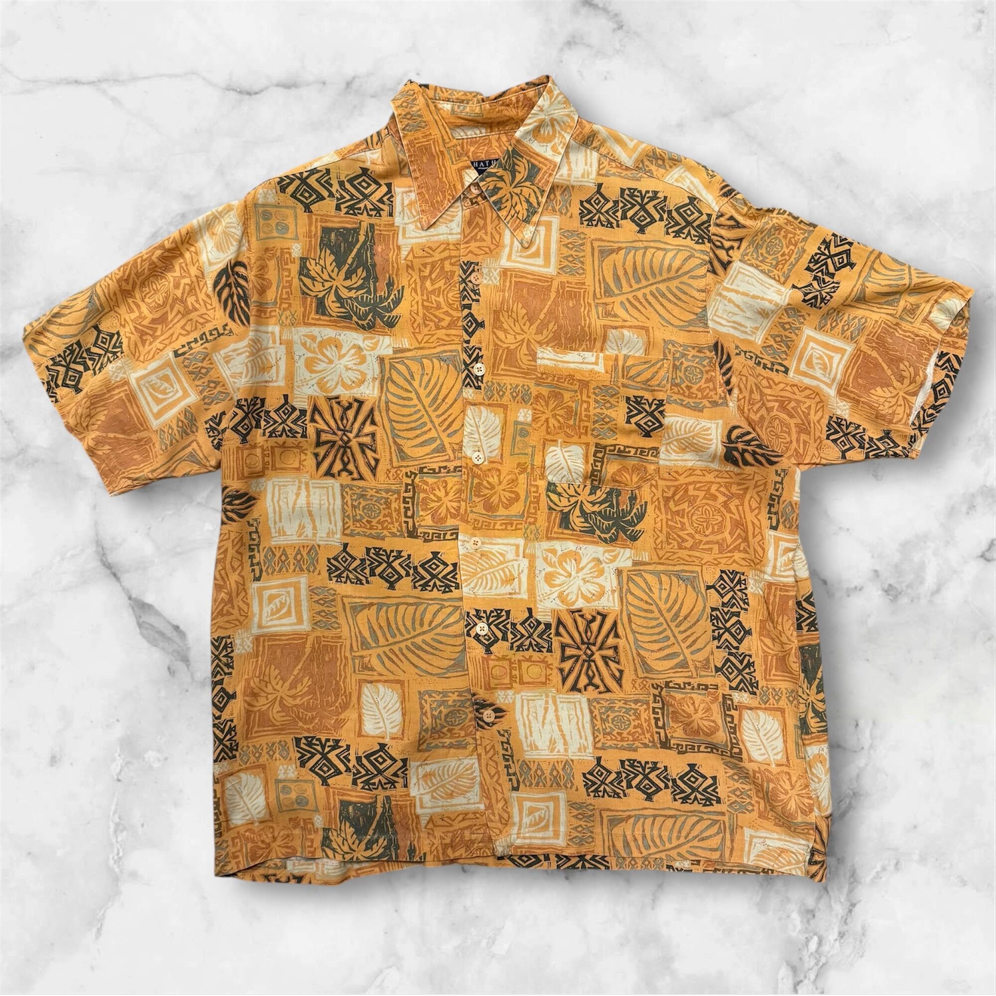 開襟シャツ 総柄 オレンジ M